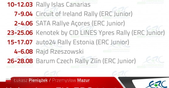 Siedem rund Rajdowych Mistrzostw Europy czeka w tym roku na Łukasza Pieniążka. Młody kierowca pięciokrotnie zamierza rywalizować w klasyfikacji ERC Junior. Pojedzie także oczywiście w Rajdzie Rzeszowskim, który jest w tym roku częścią cyklu ERC.