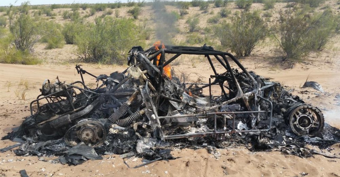 Przesiadka Adama Małysza z Toyoty na buggy SMG nie okazała się szczęśliwa. Samochód na 2. etapie Rajdu Dakar 2015 uległ spaleniu. Stało się to między ostatnim 13. międzyczasem a metą.